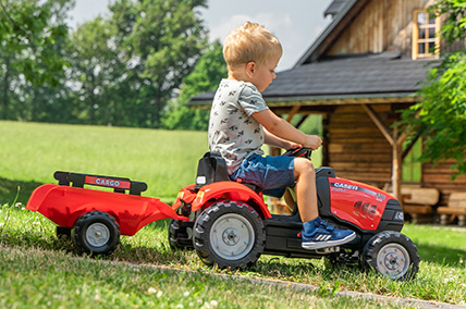 C’est un peu comme si par magie nous avions rétréci de vrais tracteurs Case IH pour en faire des jouets enfants entre 1 et 7 ans ! De quoi s’imaginer sans difficulté dans la peau d’un conducteur d’engins agricoles, d’un jardinier ou d’un paysagiste. Plus que des répliques à pédales il s’agit de véritables plateformes de jeux aux multiples fonctionnalités à découvrir de toute urgence !