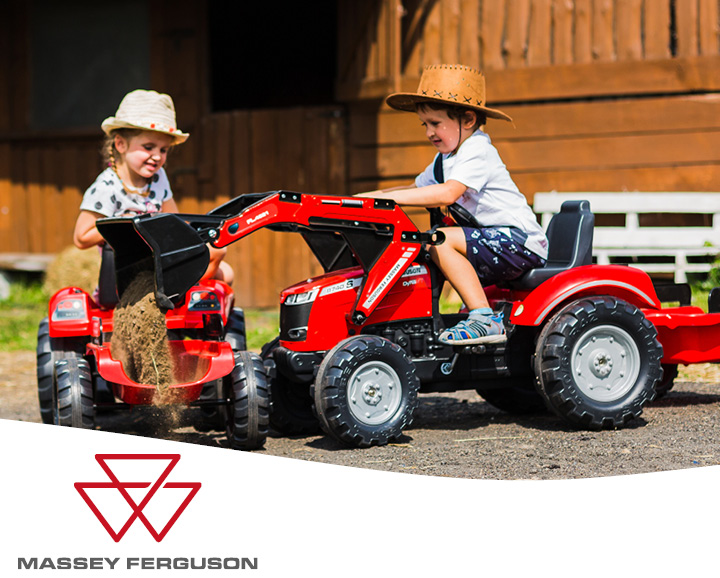 C’est un peu comme si par magie nous avions rétréci de vrais tracteurs Massey Ferguson pour en faire des jouets enfants entre 1 et 7 ans ! De quoi s’imaginer sans difficulté dans la peau d’un conducteur d’engins agricoles, d’un jardinier ou d’un paysagiste. Plus que des répliques à pédales il s’agit de véritables plateforme de jeux aux multiples fonctionnalités à découvrir de toute urgence !