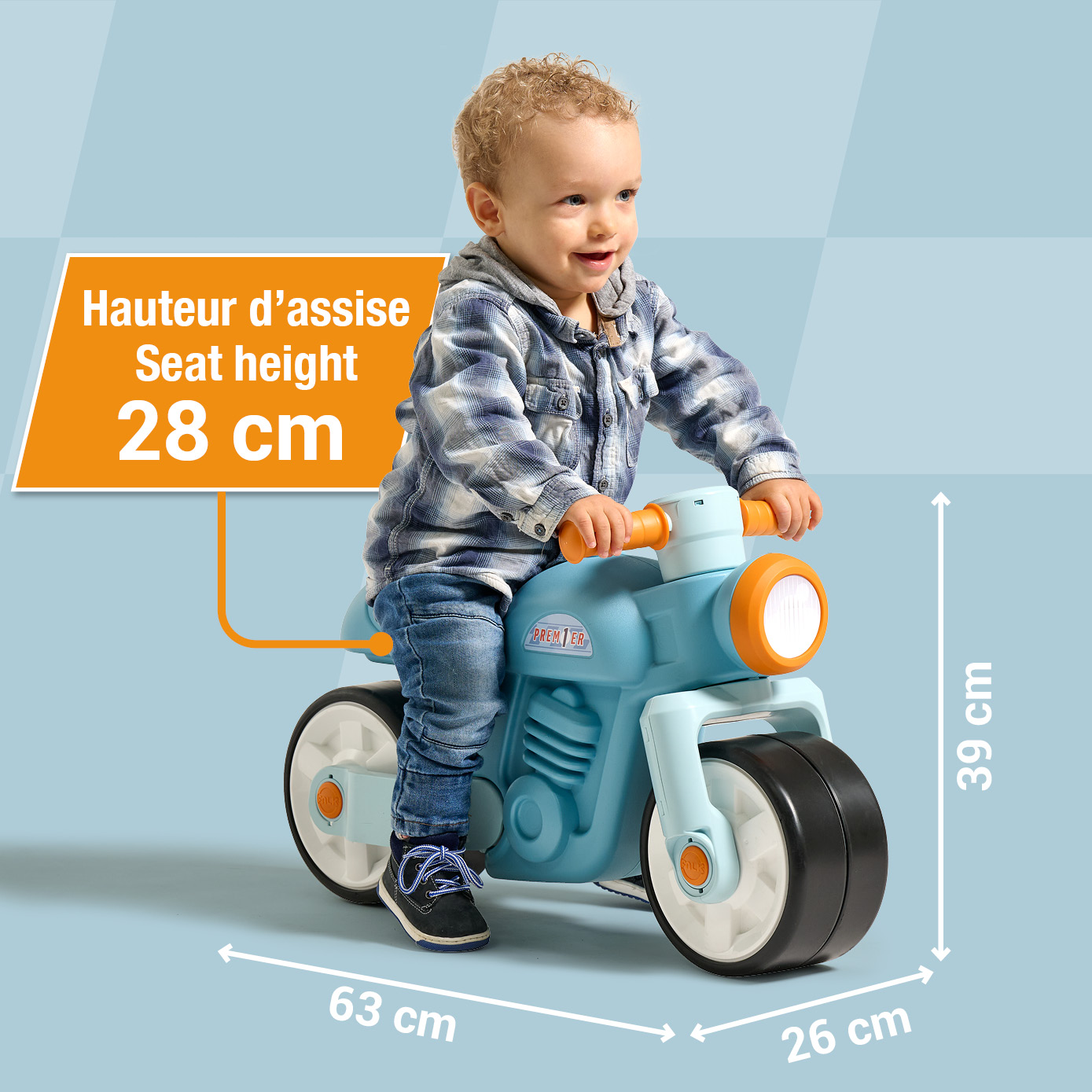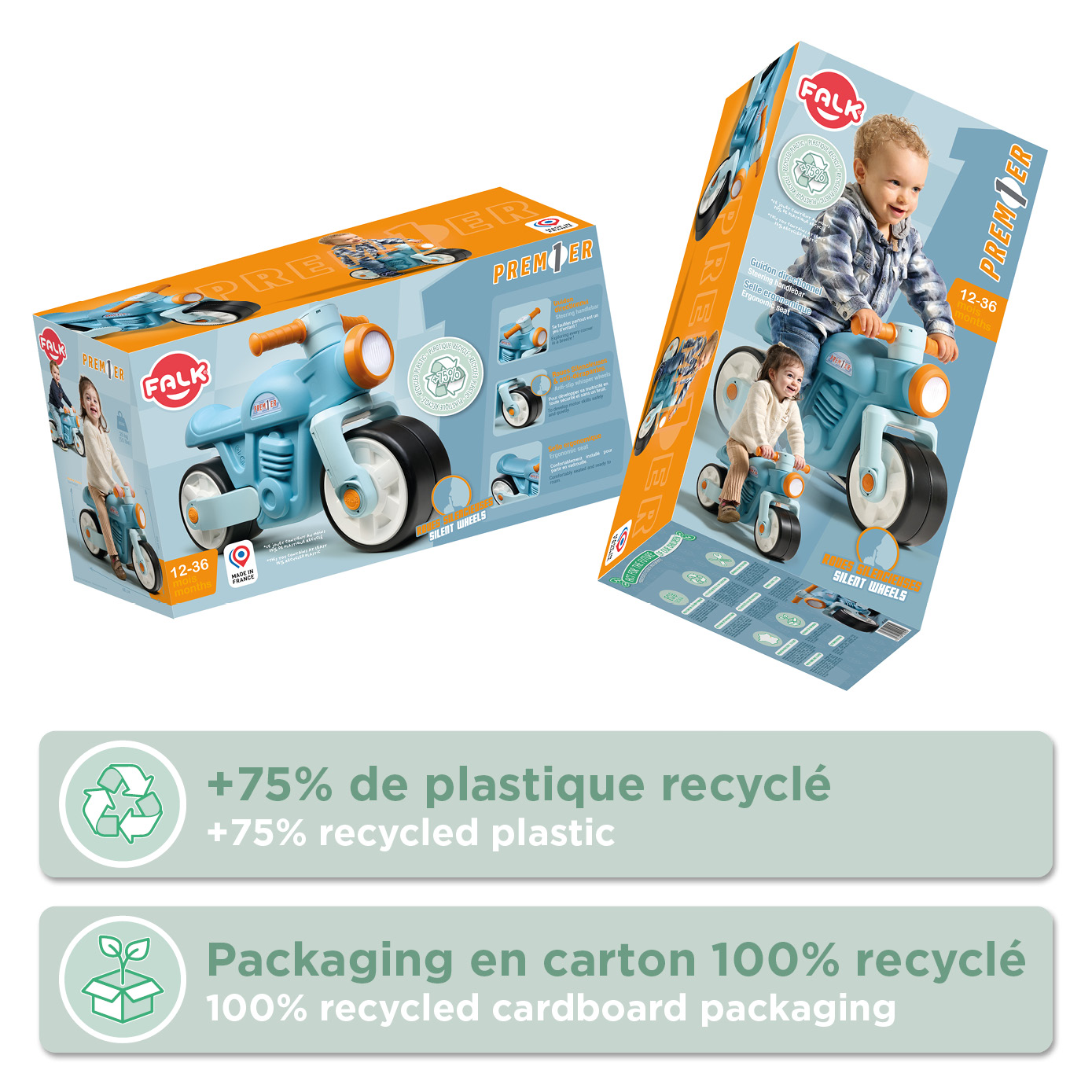 Moto « Premier » – Draisienne vintage avec larges roues silencieuses – Bleu – 75% Plastique Recyclé – 100% Fabriqué en France – Dès 12 mois