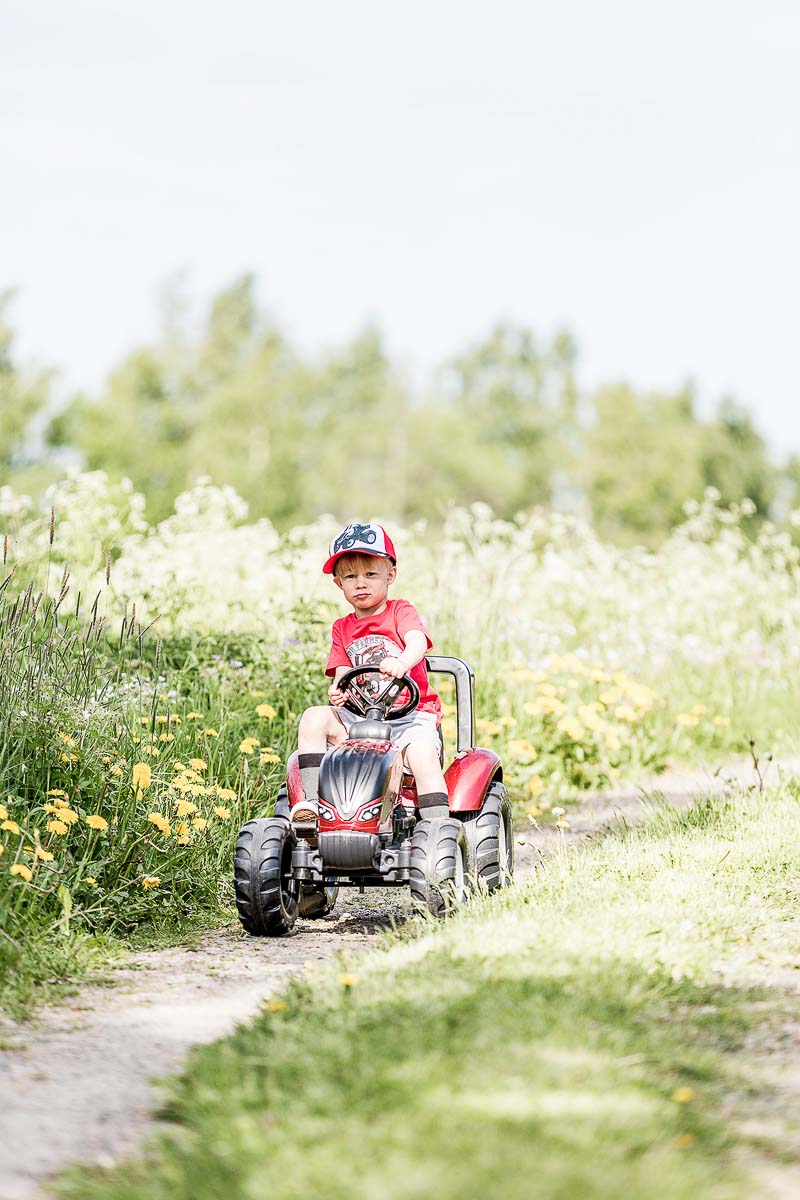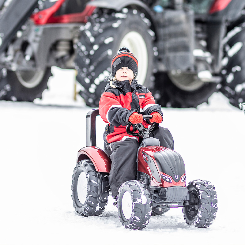 Spécialement conçu pour les petits jardiniers de 3 à 7 ans, ce tracteur Valtra rouge nacré muni d’un arceau est la véritable réplique à pédales du modèle S4.